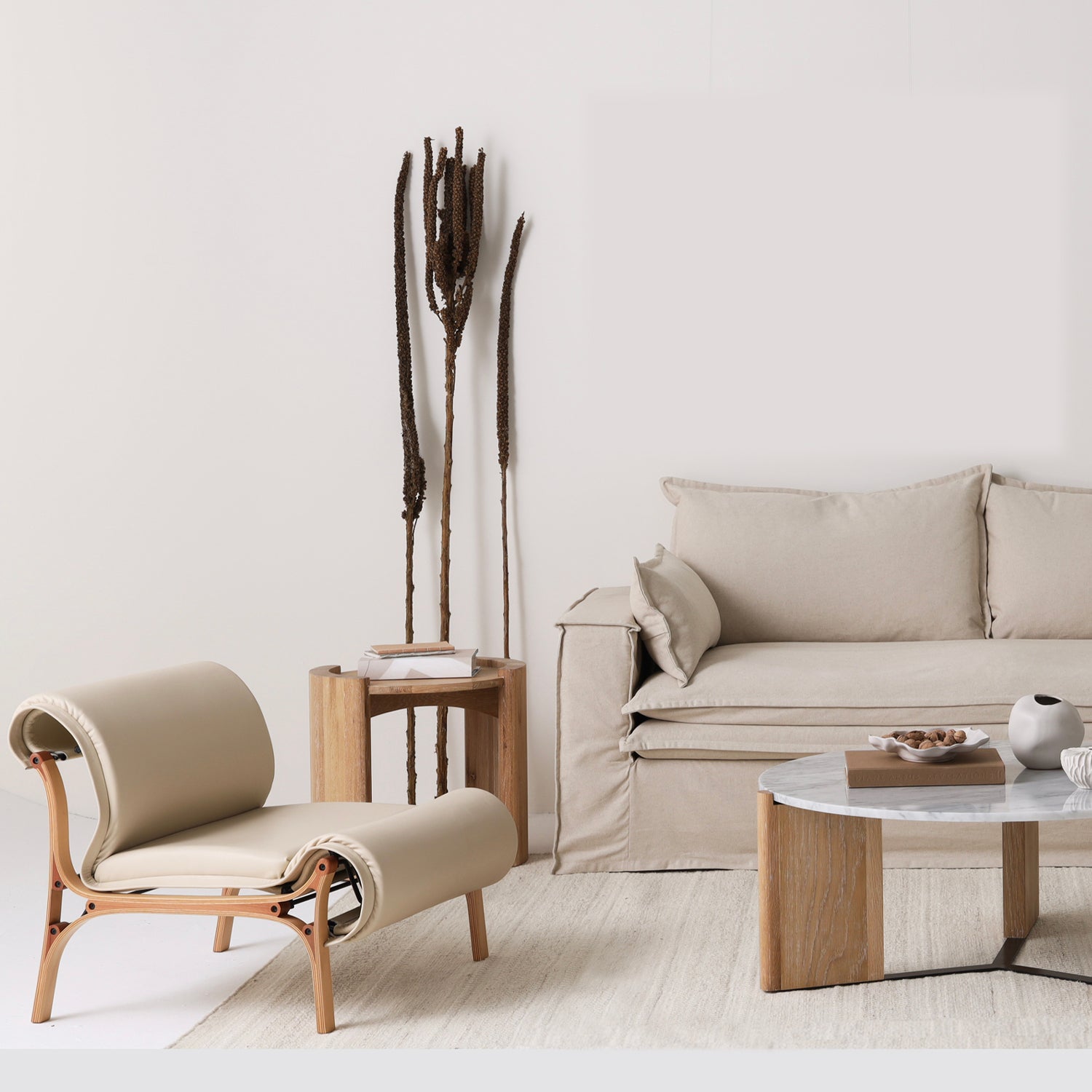 Las alfombras redondas aportan suavidad y dinamismo, integrándose con fluidez en un ambiente sostenible. Son ideales para rincones de lectura o espacios bajo mesas de centro, evocando formas orgánicas que recuerdan a los elementos naturales.