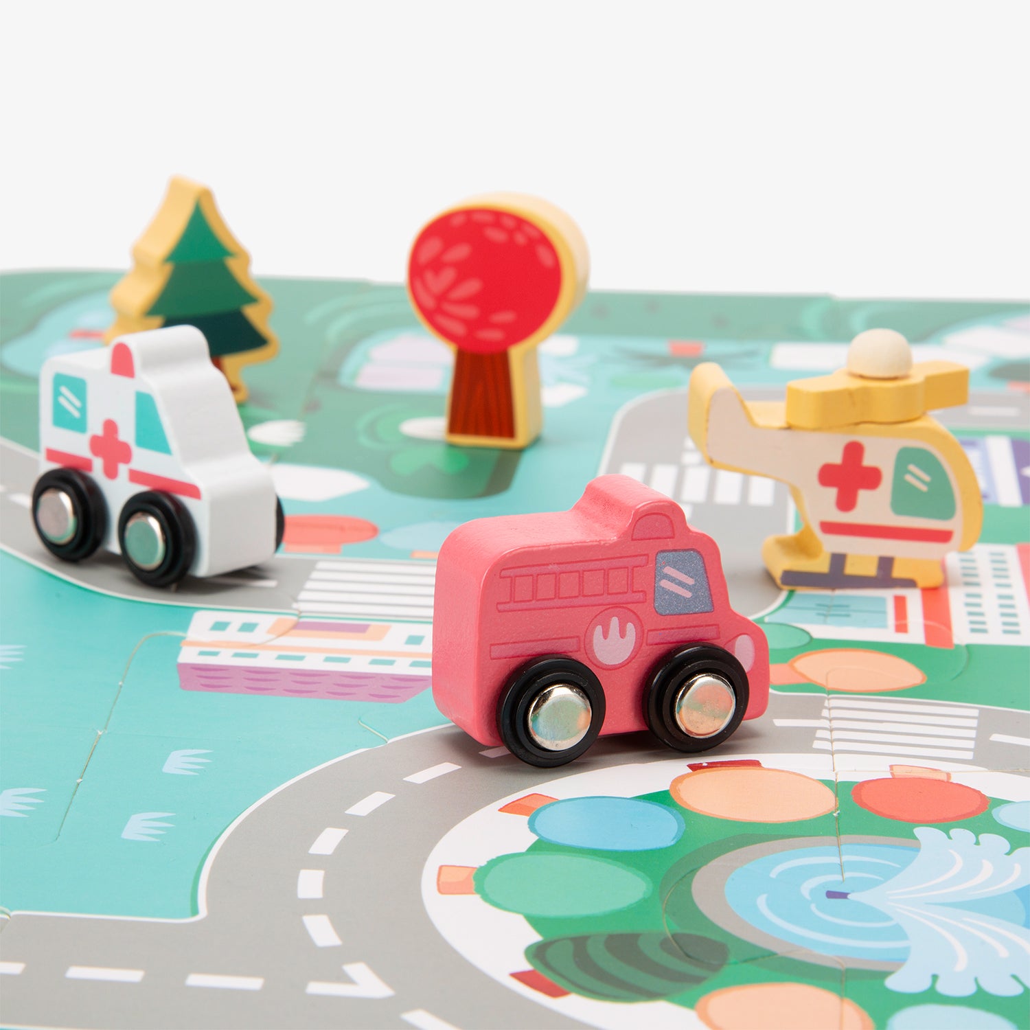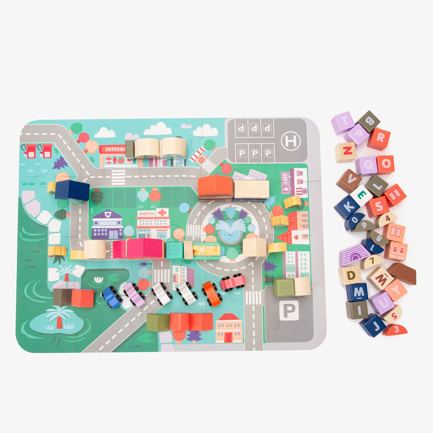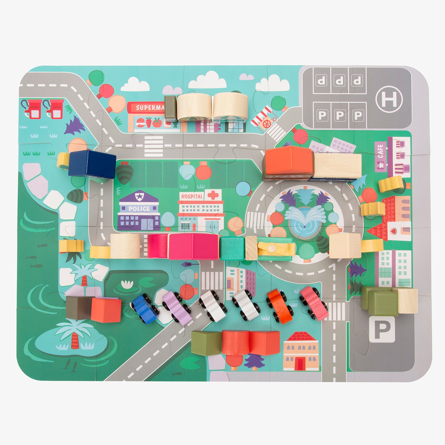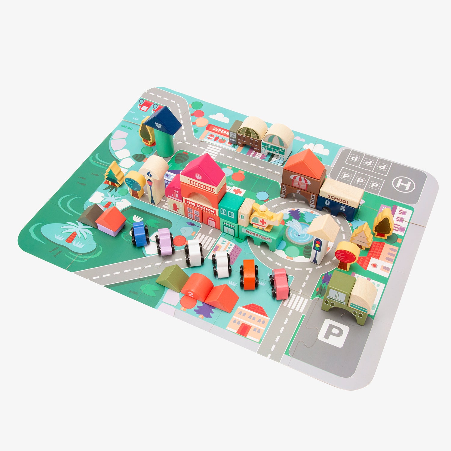 La ciudad de bloques de madera Santiago es ideal para que los niños desarrollen su creatividad e imaginación. Los juguetes de madera son biodegradables, no pasan de moda y estimulan el deseo de conocimiento en los más pequeños.