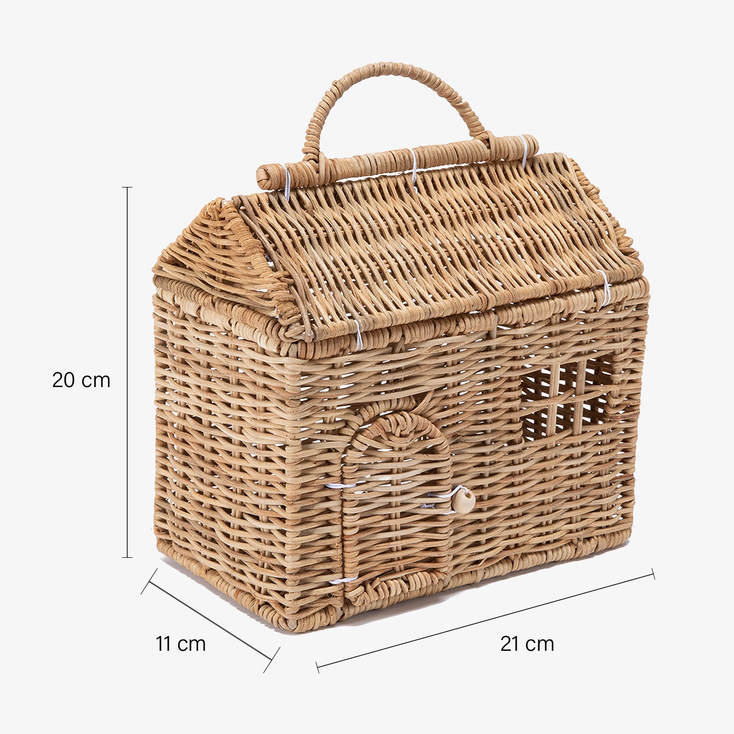 El Canasto Casita, elaborado en ratán, es el complemento perfecto para organizar con estilo y diversión el espacio de los más pequeños. Su encantadora forma de casa no solo aporta un toque lúdico a la decoración, sino que también invita a mantener el orden de manera práctica y original. Ideal para guardar juguetes, libros o accesorios, convirtiendo la organización en parte del juego y creando un ambiente cálido y acogedor.