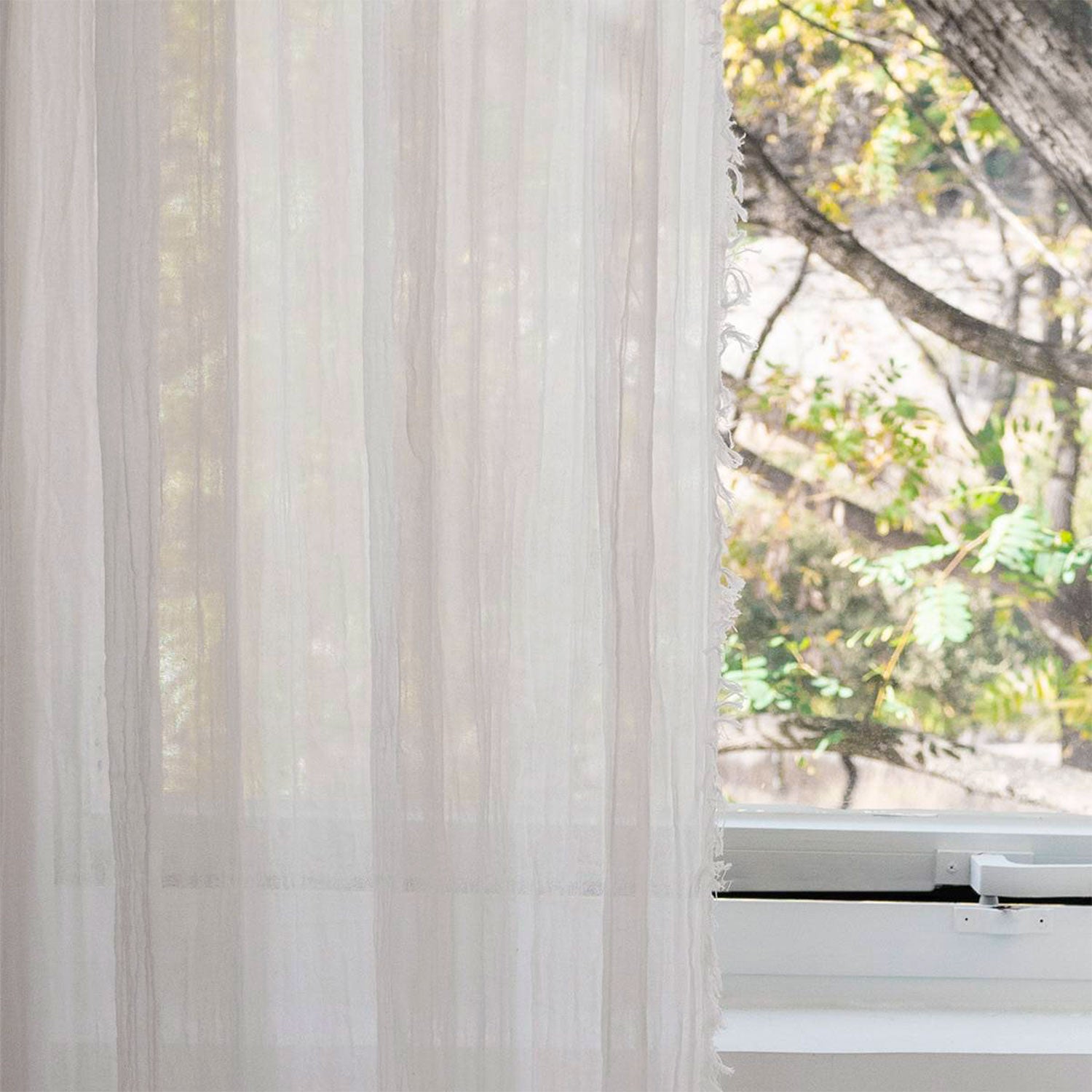 Contrastan la luz y aportan un tono cálido a tus espacios con la cortina Fray, elaborado en Algodón envegecido, le dará un toque único a tu decoración.