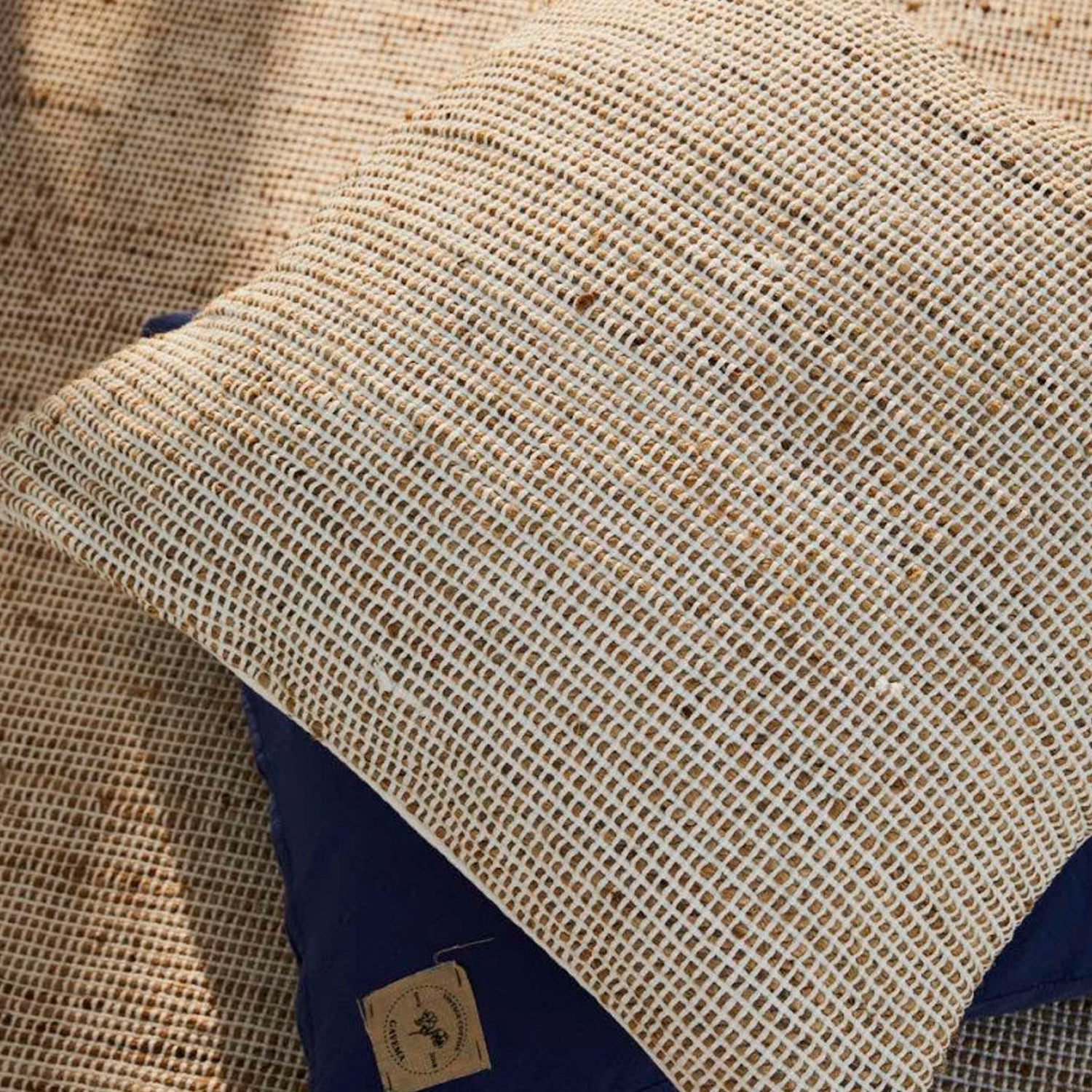 La funda de cojín West está confeccionada de yute y un cuadrillé tejido con hilo de algodón blanco. Su diseño único es perfecto para combinar con cualquier tipo de ambiente, añadiéndole toques rústicos y naturales.