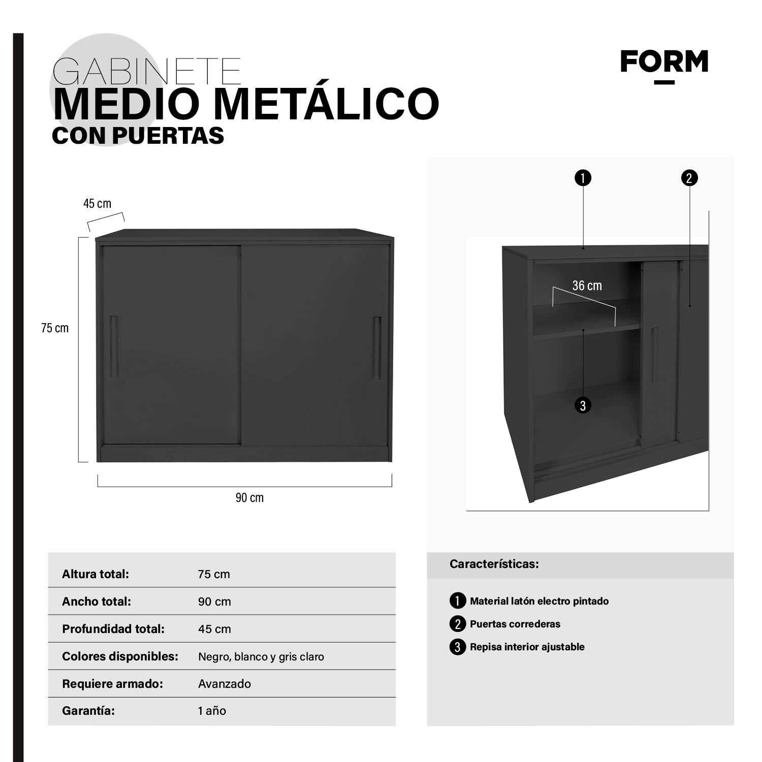 El complemento perfecto para tu oficina. Este gabinete de acero electropintado cuenta con repisas interiores ajustables, excelentes terminaciones y alta calidad ideal para alto tránsito. Prácticas puertas corredizas facilitan su acceso, además de contar una cerradura para brindarte una mejor seguridad.