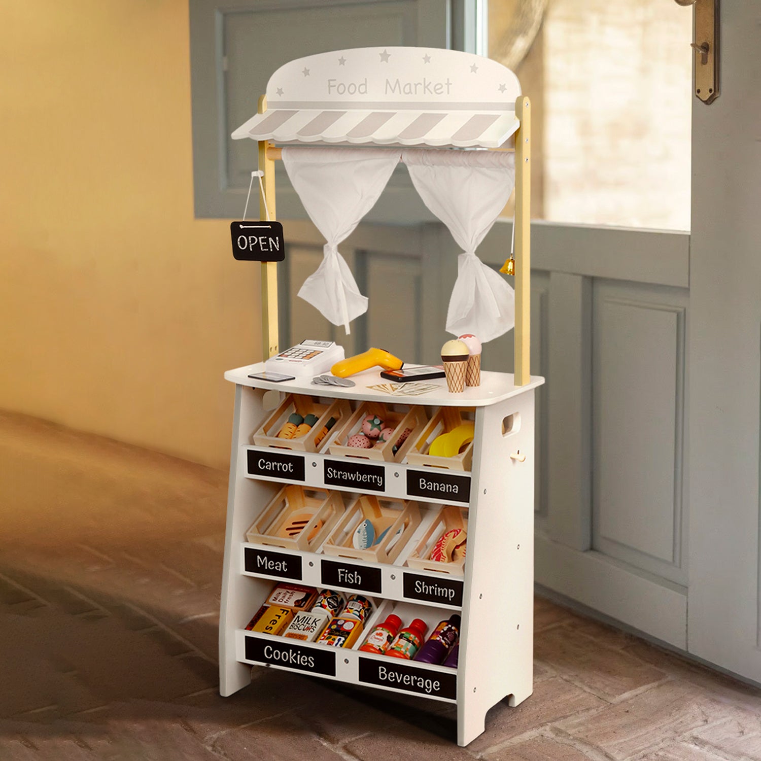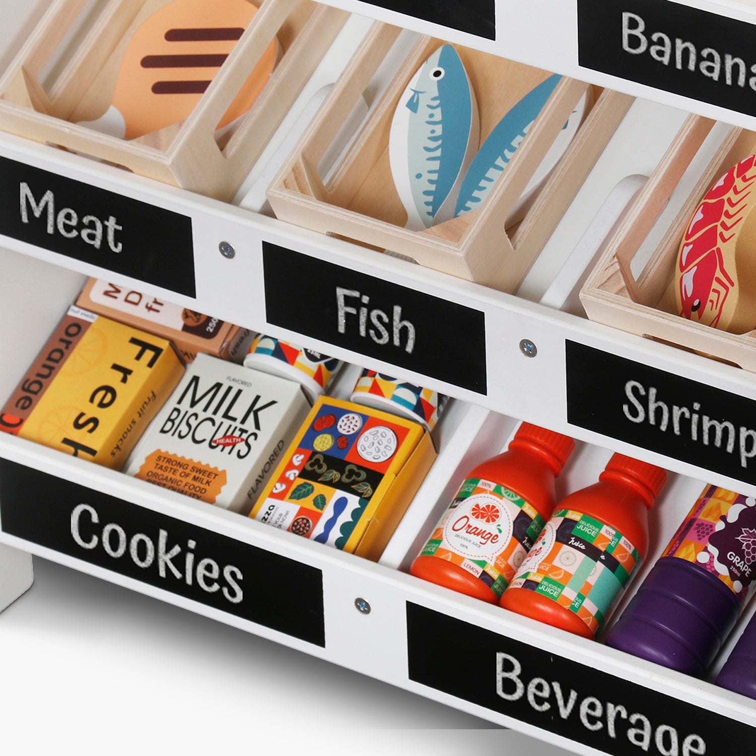 El Mercado de Juguete permite que los niños exploren el mundo de las compras y la alimentación de forma divertida y educativa. Con frutas, verduras y otros productos de juguete. Fomentando ademas, el juego de roles, el desarrollo de habilidades sociales y de comunicación, mientras "venden" y "compran" en su propio mercado colorido y lleno de vida.