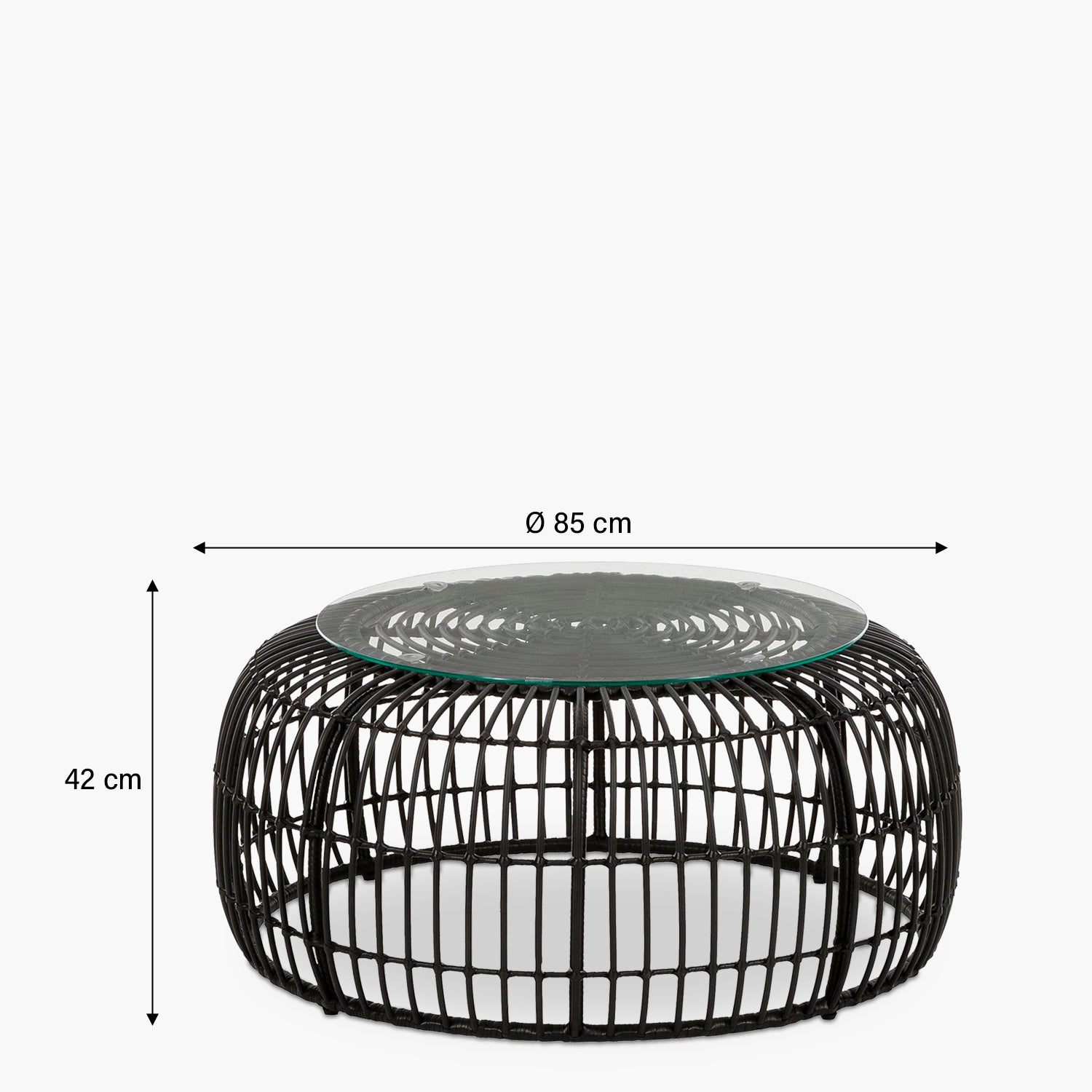 De espíritu playero, nuestra colección Creta es un must para tu terraza o espacios que buscan un look relajado e informal. Confeccionada en rattan polivinílico, incluye un vidrio en la superficie sujetado por ventosas para mayor seguridad. Perfecta como mesa de centro o mesa auxiliar.