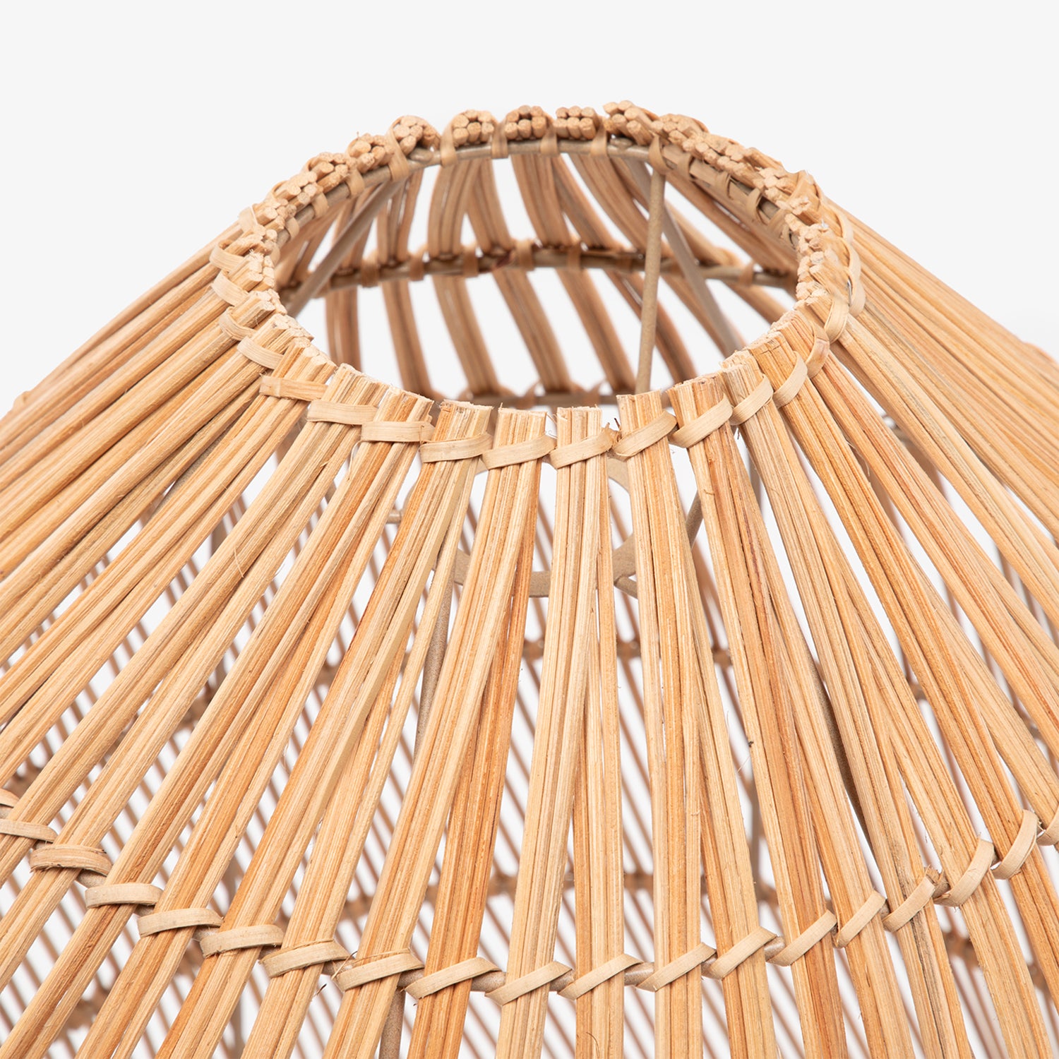 La pantalla Maui, en color natural y elaborada en rattan, es el toque perfecto para crear espacios cálidos y serenos. Su diseño orgánico aporta frescura y textura, integrándose de manera natural en cualquier ambiente que busque un estilo relajado y acogedor.