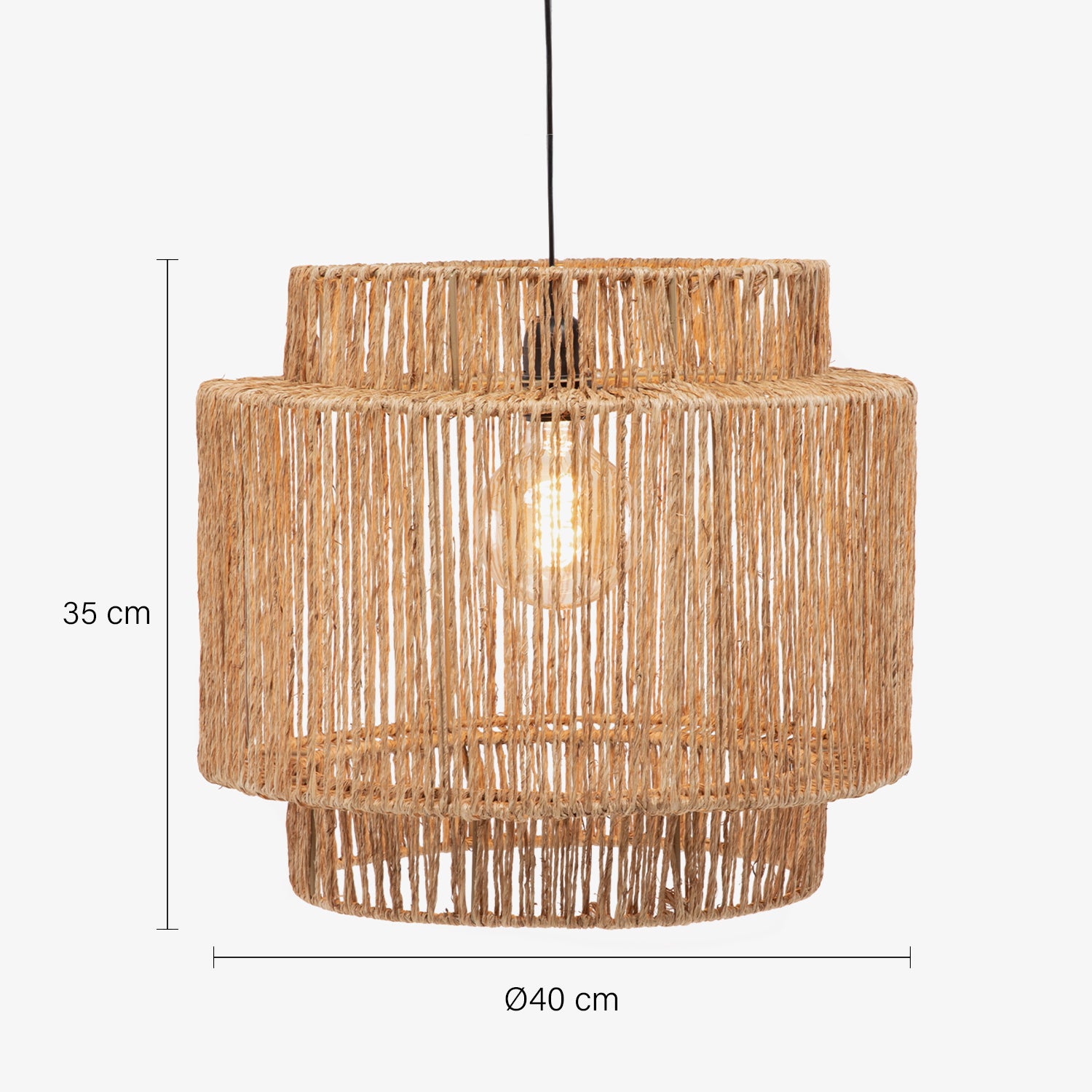 La pantalla Zanzibar, hecha de yute, es la opción perfecta para añadir una textura natural y cálida a tus espacios. Su diseño rústico y sencillo crea un ambiente acogedor y lleno de carácter, ideal para quienes buscan un estilo orgánico y lleno de personalidad.