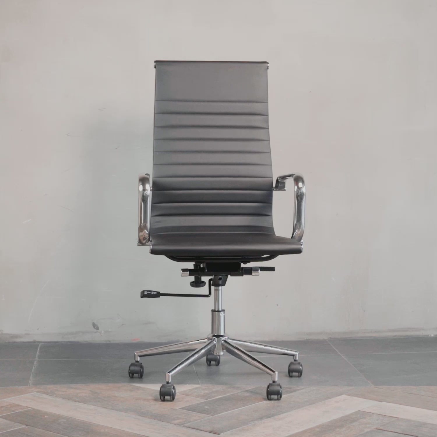 Elegante silla de visita o reuniones. Sus terminaciones cromadas brillantes y su tapizado en ecocuero le entregan el toque justo para lograr espacios más sofisticados.