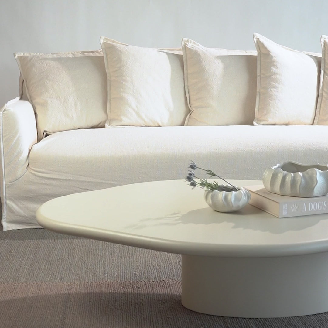 Sofisticado y acogedor, este sofá de 4 cuerpos color crudo combina estilo moderno y comodidad total con sus cojines extra grandes y funda de textura suave, ideal para transformar cualquier sala en un espacio luminoso, elegante y lleno de armonía.