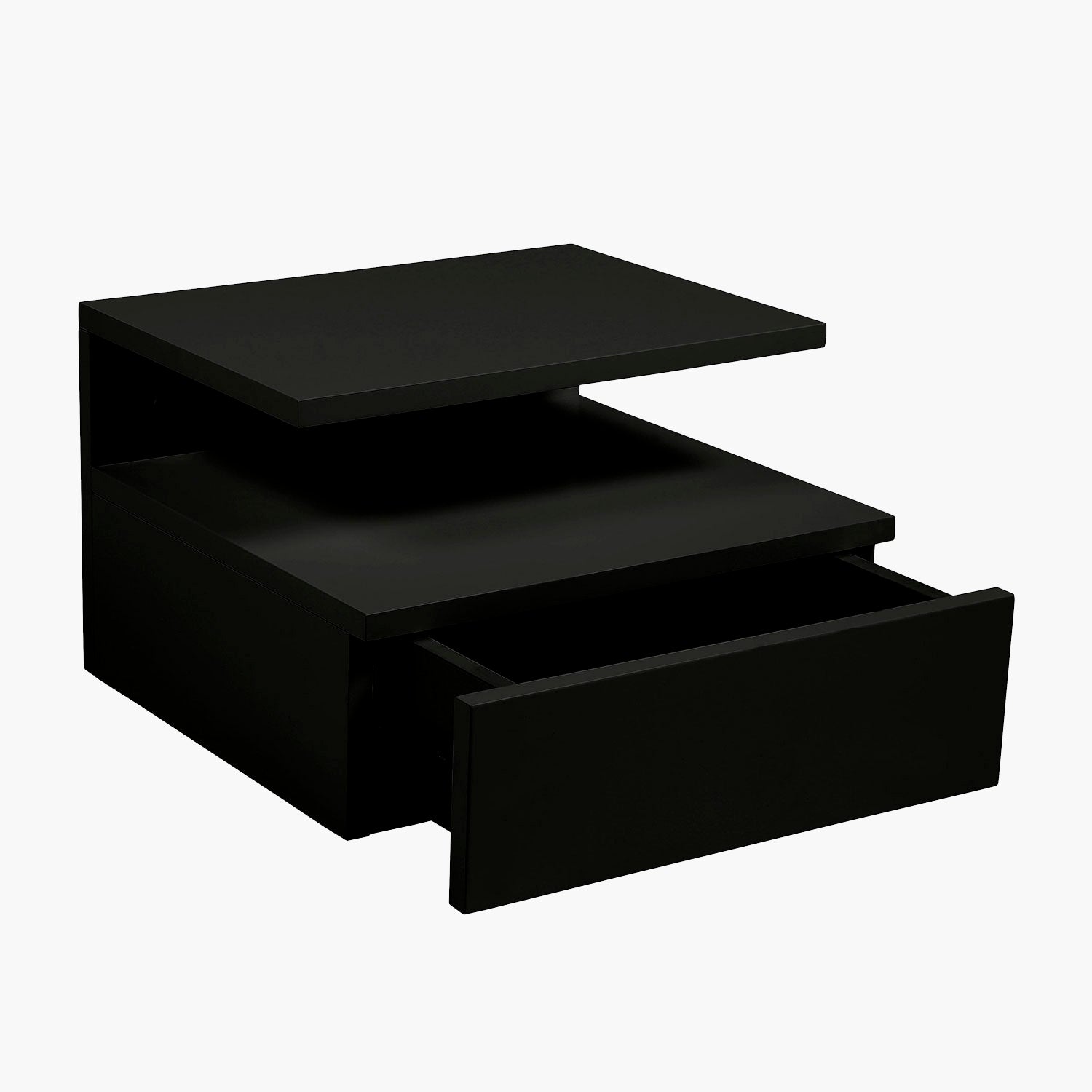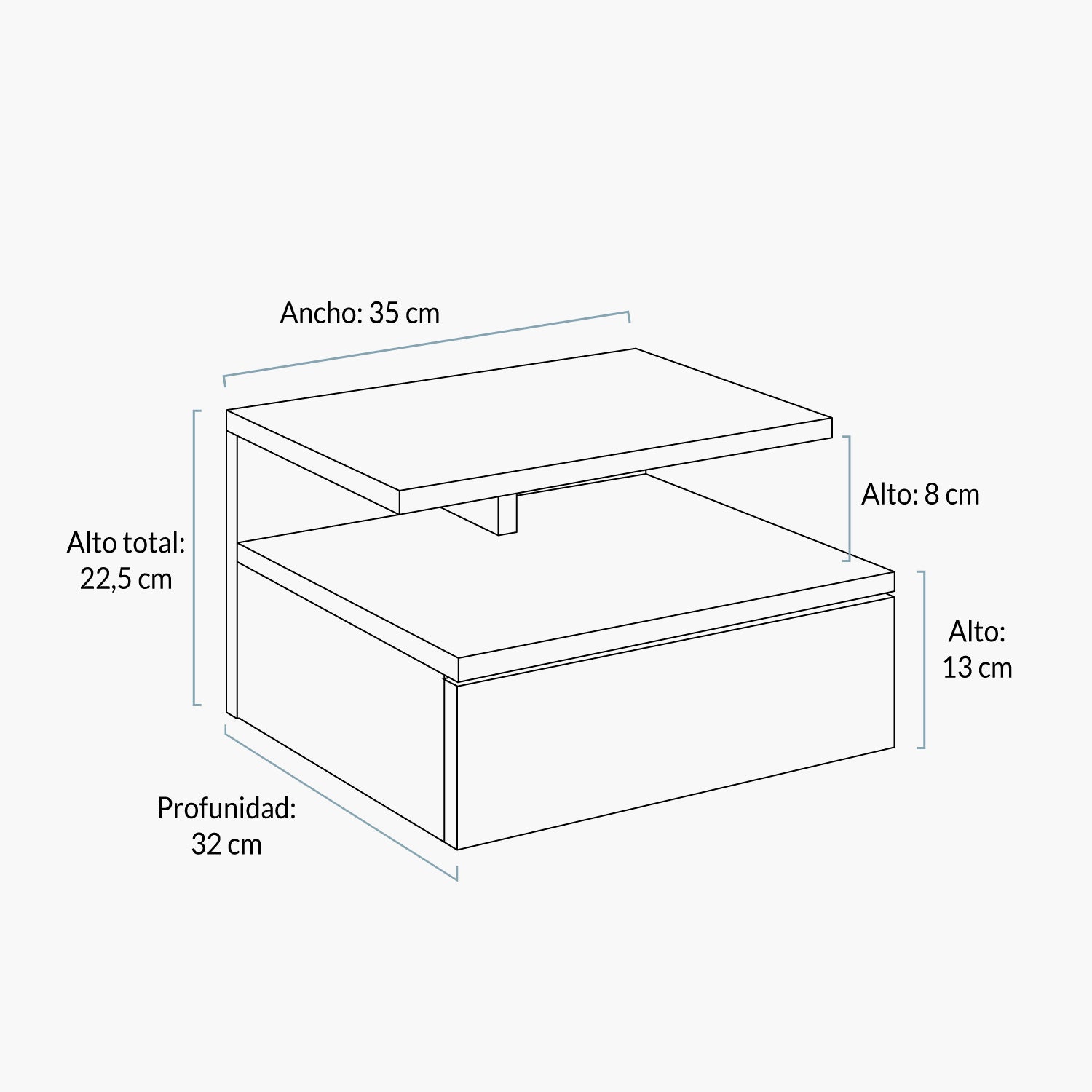Sencillo, pero muy práctico es el velador Ashlan. Perfecto para espacios reducidos al instalarse directamente al muro. Tiene un espacio abierto y un cajón para guardar cosas pequeñas.