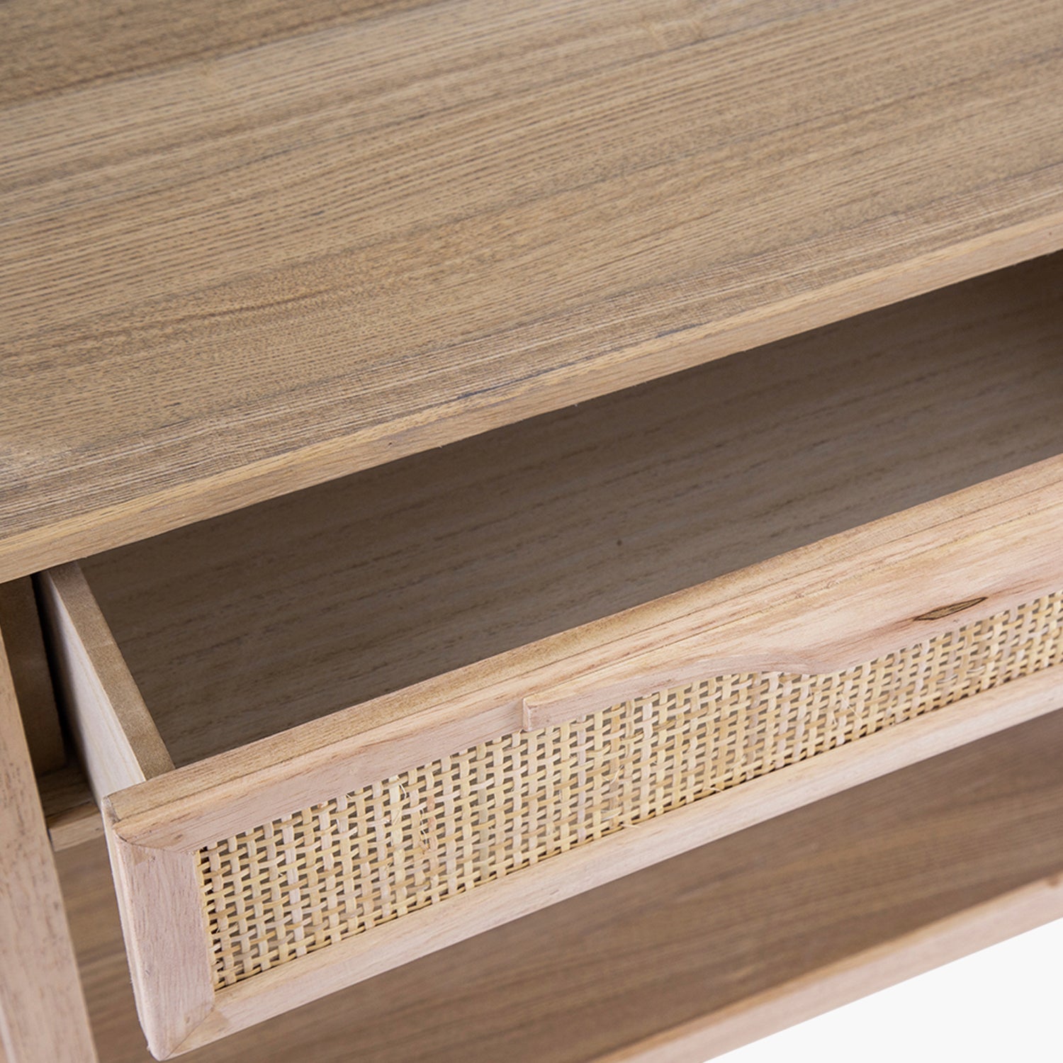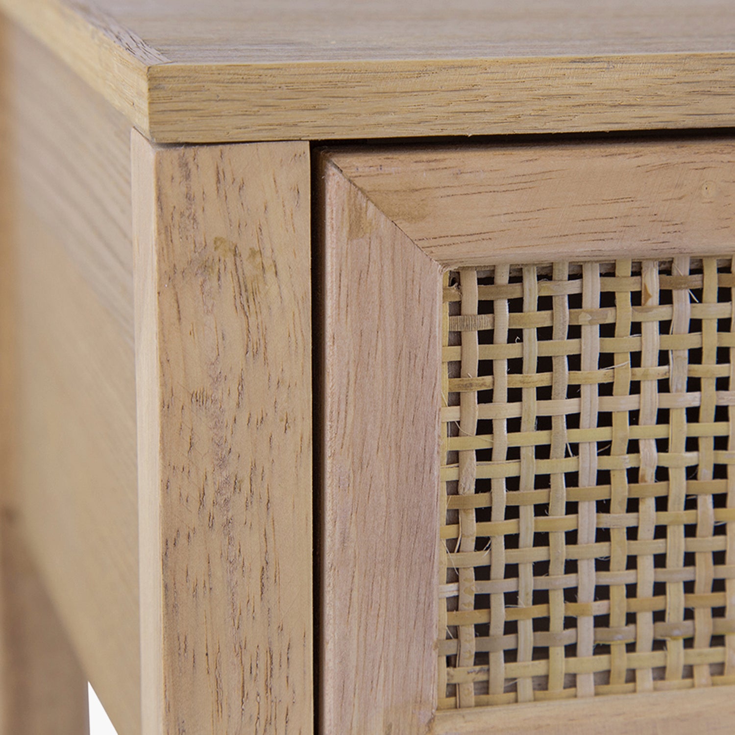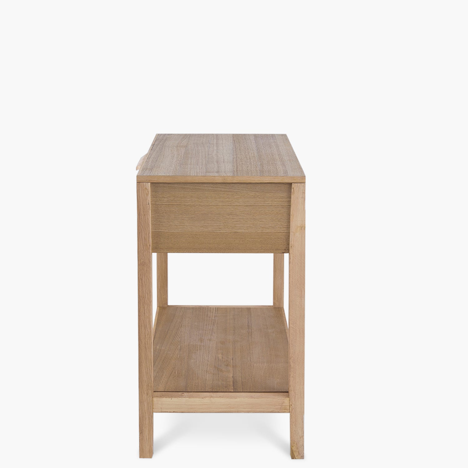 John es un velador de estilo clásico con un acabado natural. Además de su atractivo diseño, este velador cuenta con un cajón para almacenar objetos de fácil acceso y un nivel inferior que permite lucir accesorios decorativos.